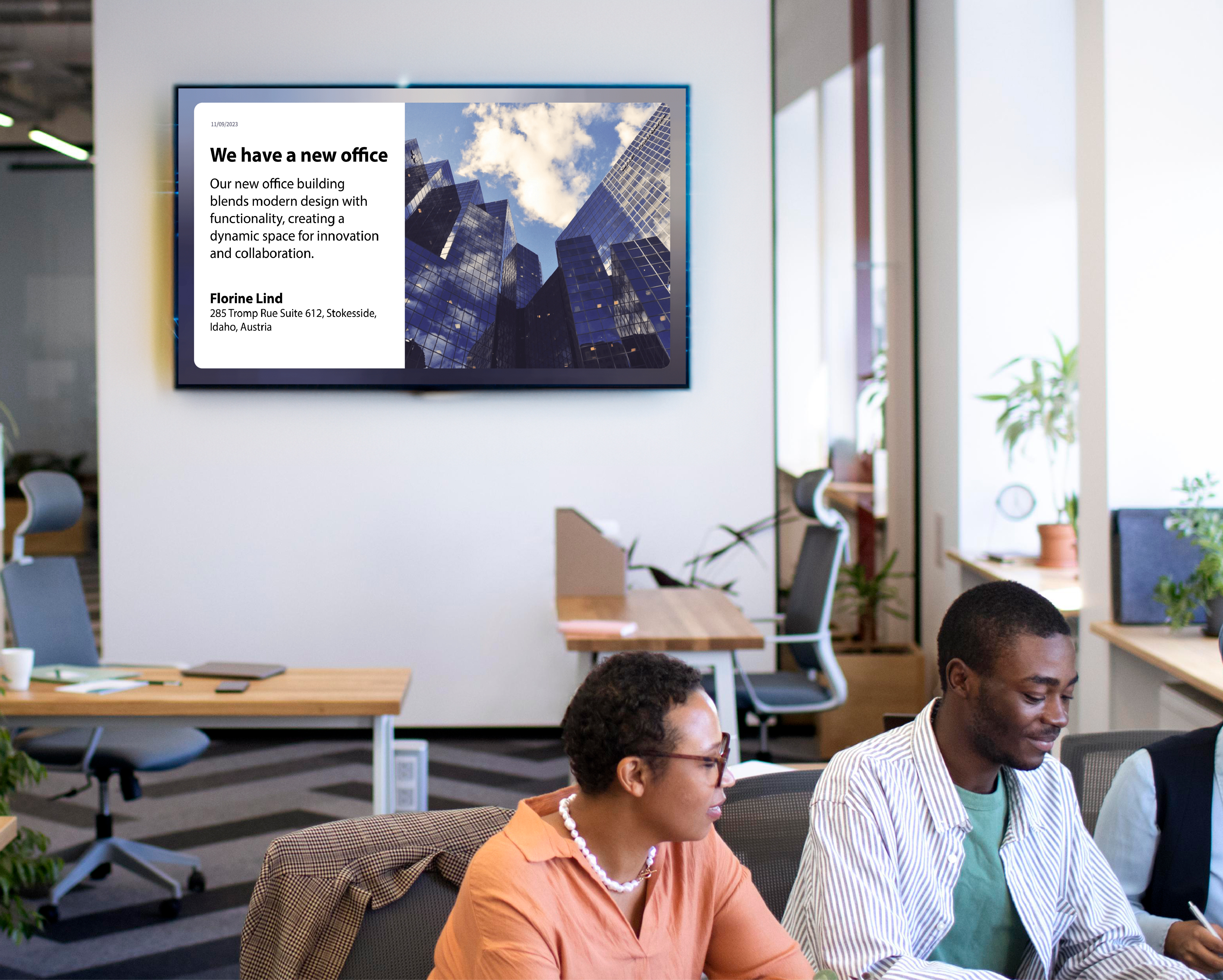 Picture this: You stroll into the office on a Monday morning, coffee in hand, ready to tackle the week ahead. But instead of the usual drab notices pasted on the walls, you’re greeted by colorful digital displays.