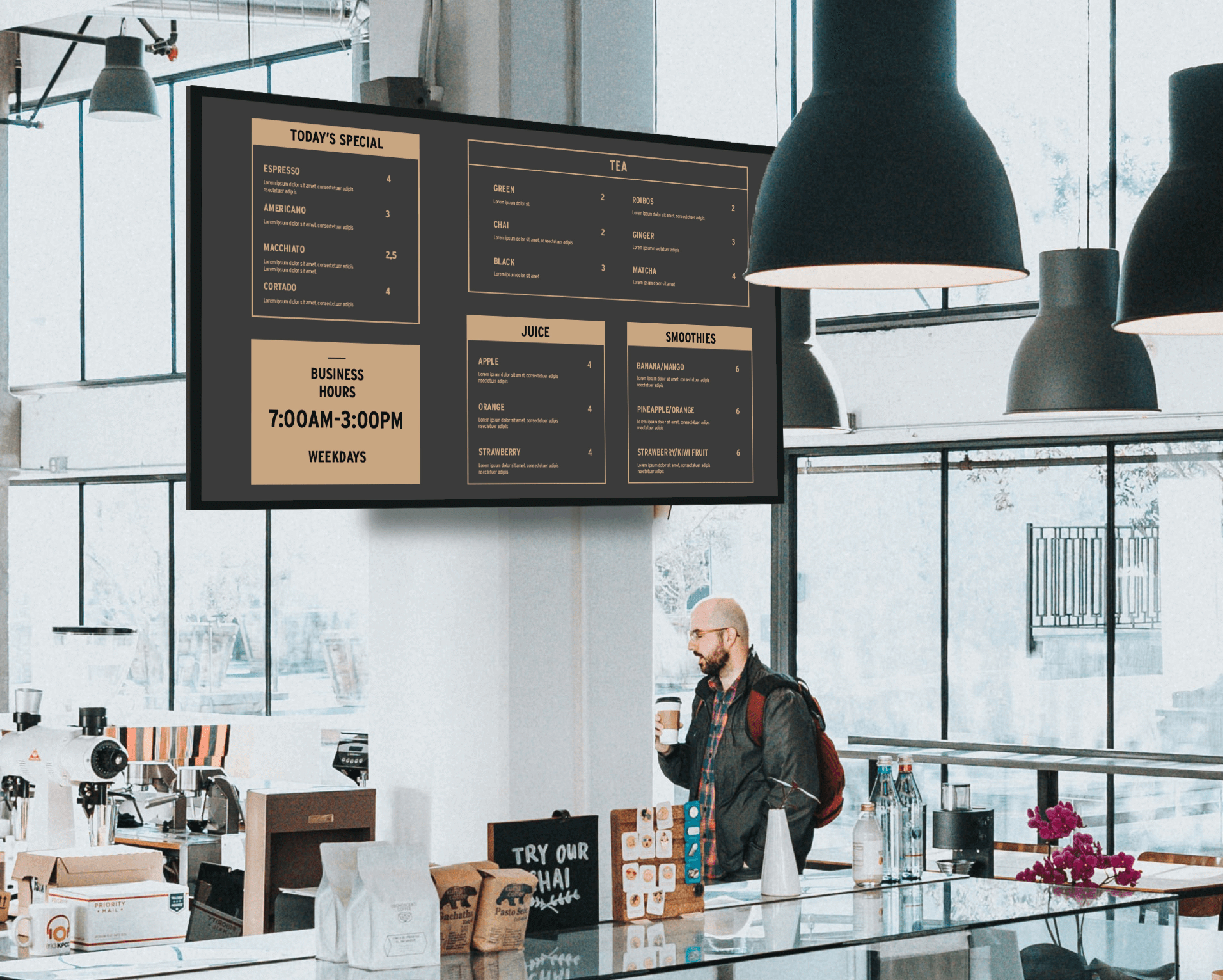 For example, a local coffee shop uses digital signage cloud software to update its menu board daily with new coffee blends and pastries. Customers are always in the loop with the latest offerings making it easy for them to check the menu and place their orders rather than waiting and searching for a printed menu.