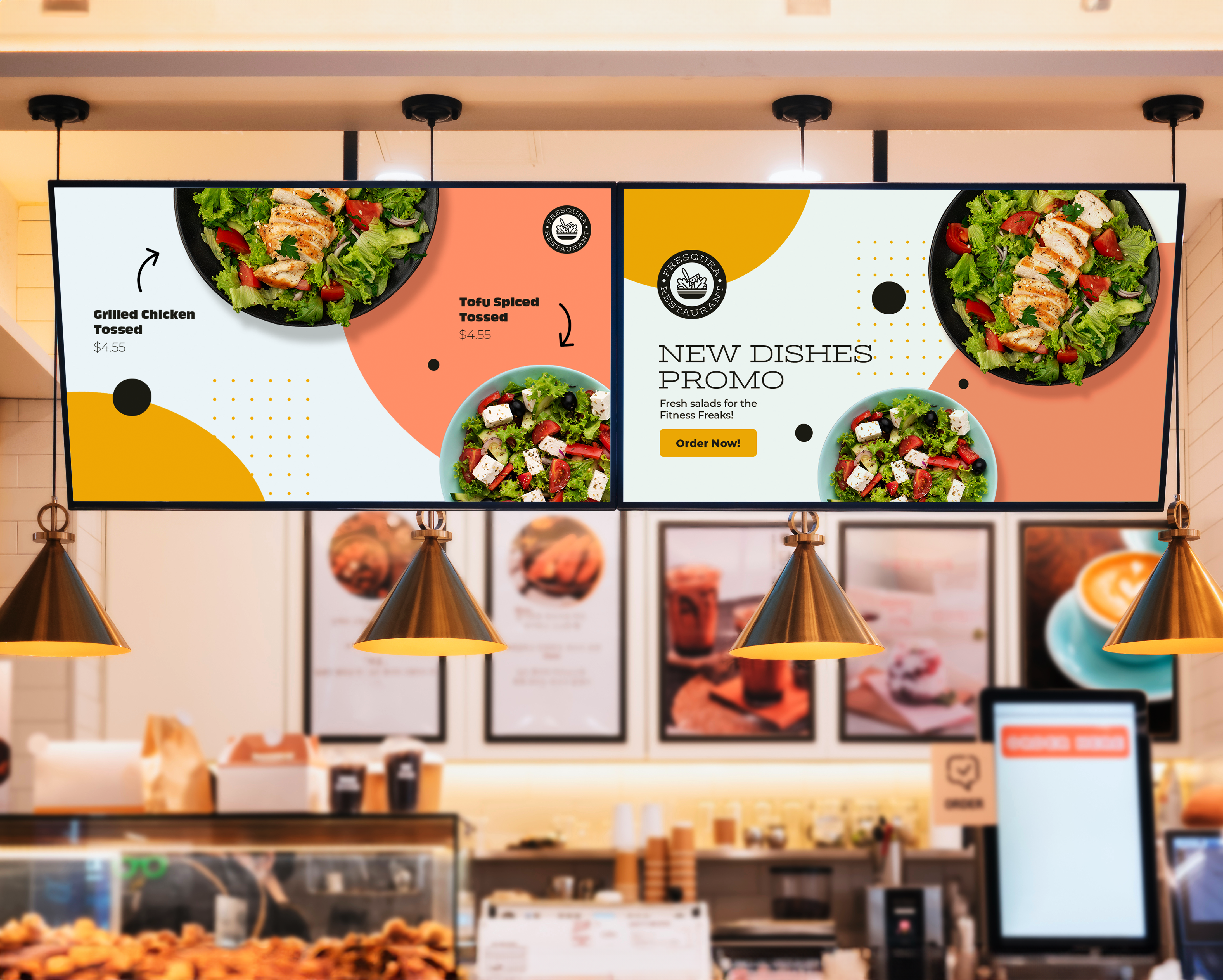Position your digital menu boards where they’re easily visible. Consider placing them at eye level and in areas with minimal glare to ensure customers can see them clearly.